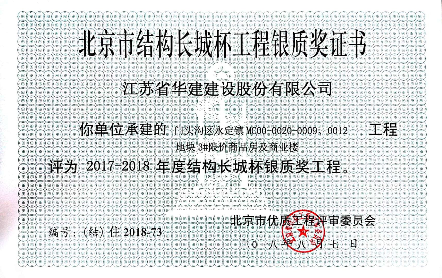 北京公司再获两项省级优质结构工程 时间:2018-10-20 2971 近日,北京市工程建设质量管理协会公布了2017-2018年度北京市结构长城杯工程及获奖单位,由北京公司承建的门头沟区永定镇MC00-0020-0009、0012地块3#限价商品房及商业楼项目获得结构长城杯银质奖。 同时,由我司承建的绿城杨柳郡一期17#楼、18#楼、裙房及地下室工程被评定为2018年广西建设优质结构奖。
