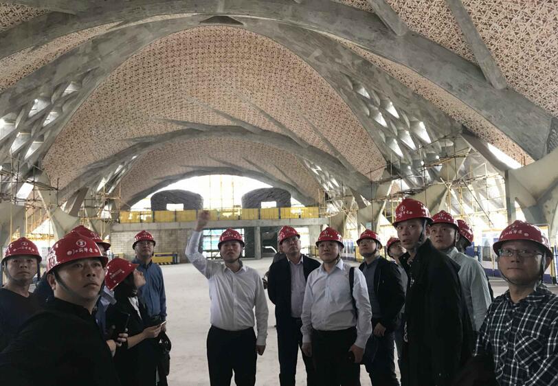 在玛丝菲尔项目现场,双方重点交流了艺术仿生建筑的超复杂结构施工技术和废旧建筑垃圾转化为装饰材料的绿色施工技术。