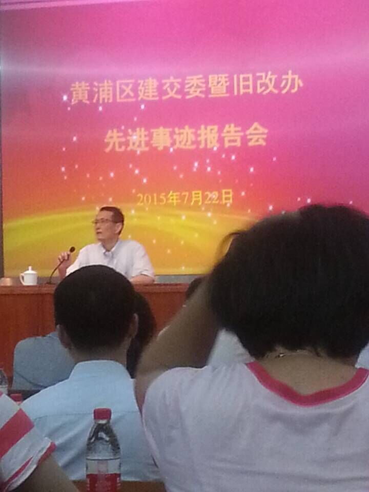 杨连山同志在上海黄浦区做先进事迹报告 时间:2015-08-13 5416 日前,上海区域公司外滩源项目部现场施工负责人杨连山同志应邀,在上海市黄浦区建设交通委暨旧改办开展的“三严三实”专题教育系列活动中,做了专题为《爱岗敬业,服务社会,体现自身价值》的先进事迹报告。黄浦区建交委、旧改系统及来自建设工地的工人党员180余人参加了报告会,邀请全国劳动模范张国樑、上海市先进工作者蒋昭瑜、上海市先进农民工杨连山等三位同志做先进事迹报告,杨连山同志的事迹报告打动了与会人员的心,引起了了大家的一致共鸣。