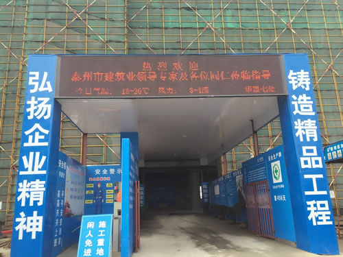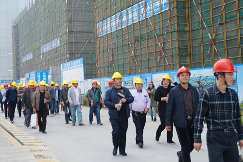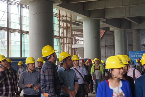 4月21日下午,半岛官网入口网页版苏北分公司承建的泰州金融服务中心现场,彩旗猎猎,热闹非凡,泰州市创精品工程观摩会隆重举行,泰州市建工局副局长王京陵以及泰州市各市(区)建筑业主管部门工程创优负责人、建筑业协会负责人、全市二级以上资质企业总工程师、技术负责人、创优企业总工程师、项目经理、技术负责人等共计400人参加了观摩活动,与会人员对半岛官网入口网页版在建设金融服务中心兴业大厦过程中创下了江苏泰州地区多个之最表示了浓厚兴趣,多个之最包括:高度最高(地上58层、设计高度: