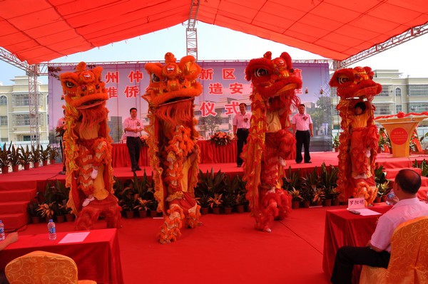 最后,在一段激情欢快的醒狮表演后,参加仪式的五位领导共同启动推杆,宣布该项目正式开工。