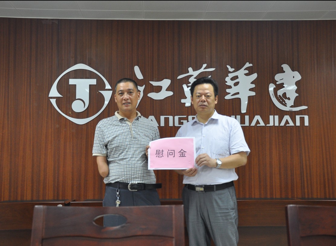 惠州区域公司慰问伤残员工 时间:2013-08-06 3552 夏日炎炎,酷暑难耐。半岛官网入口网页版副总经理、惠州分公司总经理华恒荣率分公司工会亲切慰问了在惠州分公司第九工程处工作的伤残员工居家应(居家应90年代在宝应工作期间,不慎失去了右膀,被定为三级伤残)。慰问中,华总详细了解他的生活、工作情况,并向他发放慰问金,同时要求九处在工作、生活上给予一定的关心。居家应感谢组织对他的关心,表示身残志不残,更加积极努力的工作,不辜负组织的期望。惠州分公司总会计师高正金,分公司工会主席王健陪同慰问。