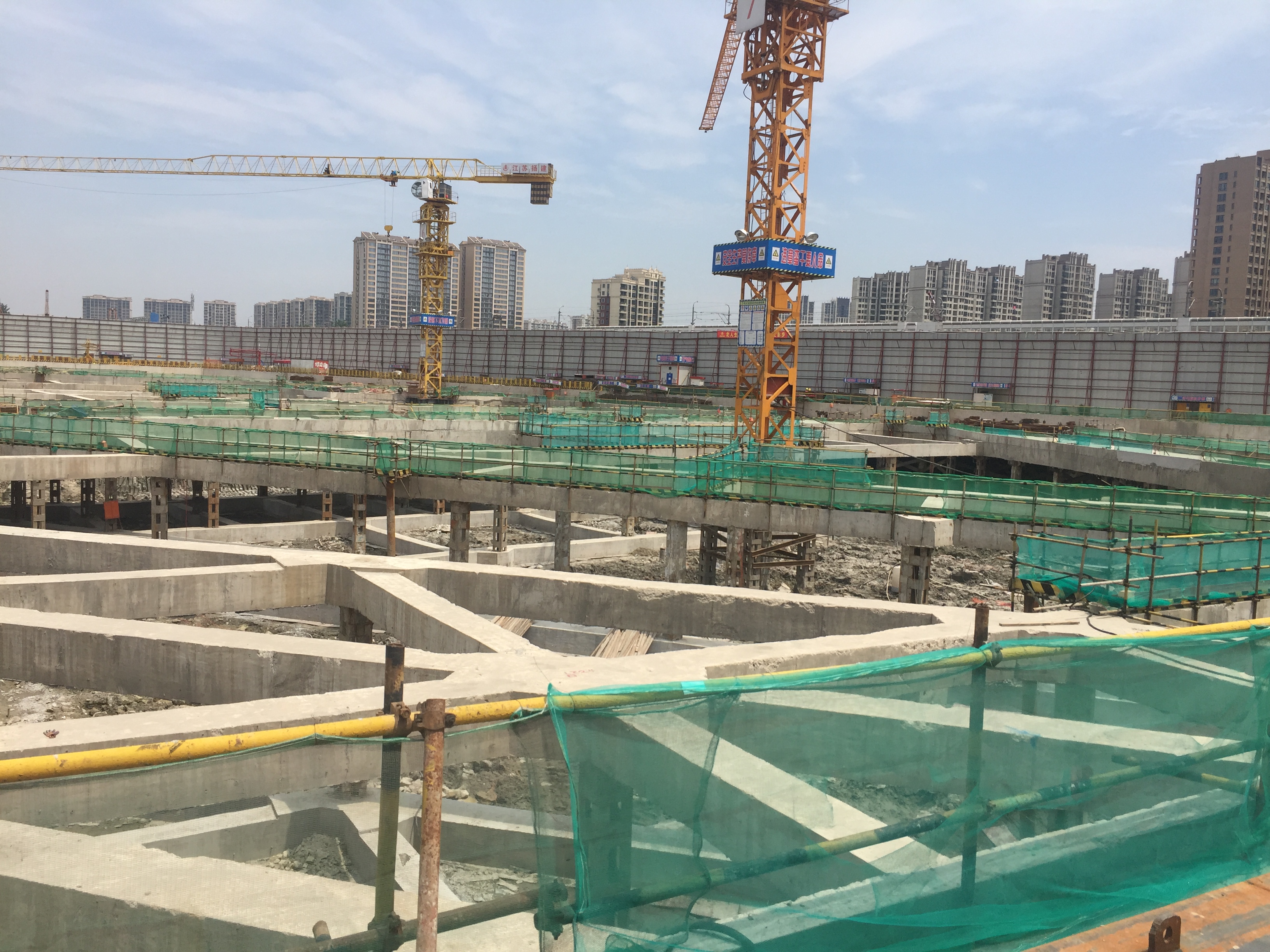 印象城项目是“印力集团”投资兴建的大型商业和交通综合体建筑,地上六层,地下室三层,总建筑面积约32万m2,整体工程特别是地下结构相当复杂,施工难度大。观摩人员重点了解了总包企业在场地布置、文明施工及地下结构施工工艺和技术预控等方面情况。