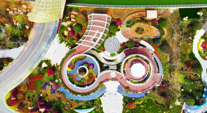 华建园以“绿色建造、美好家居”为主题,参与2021扬州世界园艺博览会。该园从空中俯瞰呈现“鲁班墨斗”造型,巧妙将墨轮、墨池、班母等墨斗主要构件进行分解提取,经过现代手段重组形成建筑主体,配有屋顶花园、观景栈道、临水花廊、趣味滑梯、层叠水景、后花园、亲水平台等景观设施,馆内采用“双馆联展”形式,分为是智能馆和绿建馆,分别体现当代建筑未来走向和绿色建筑环保理念。自开园以来,吸引百万游客驻足观赏,成为打卡的网红景点。
