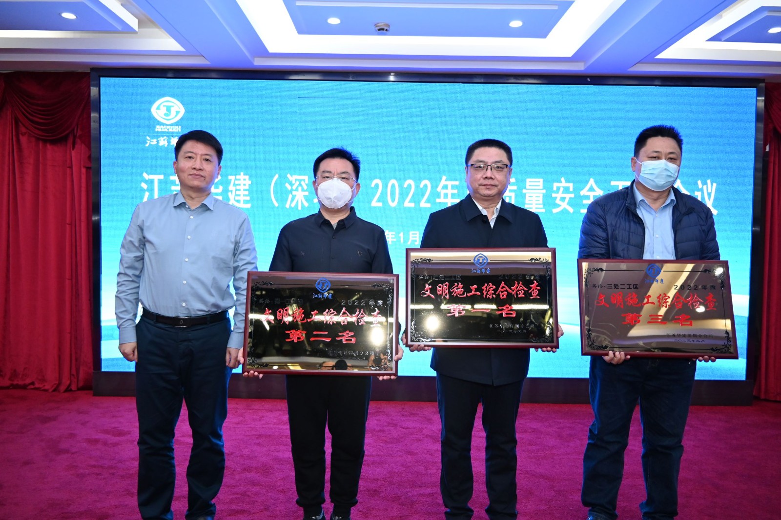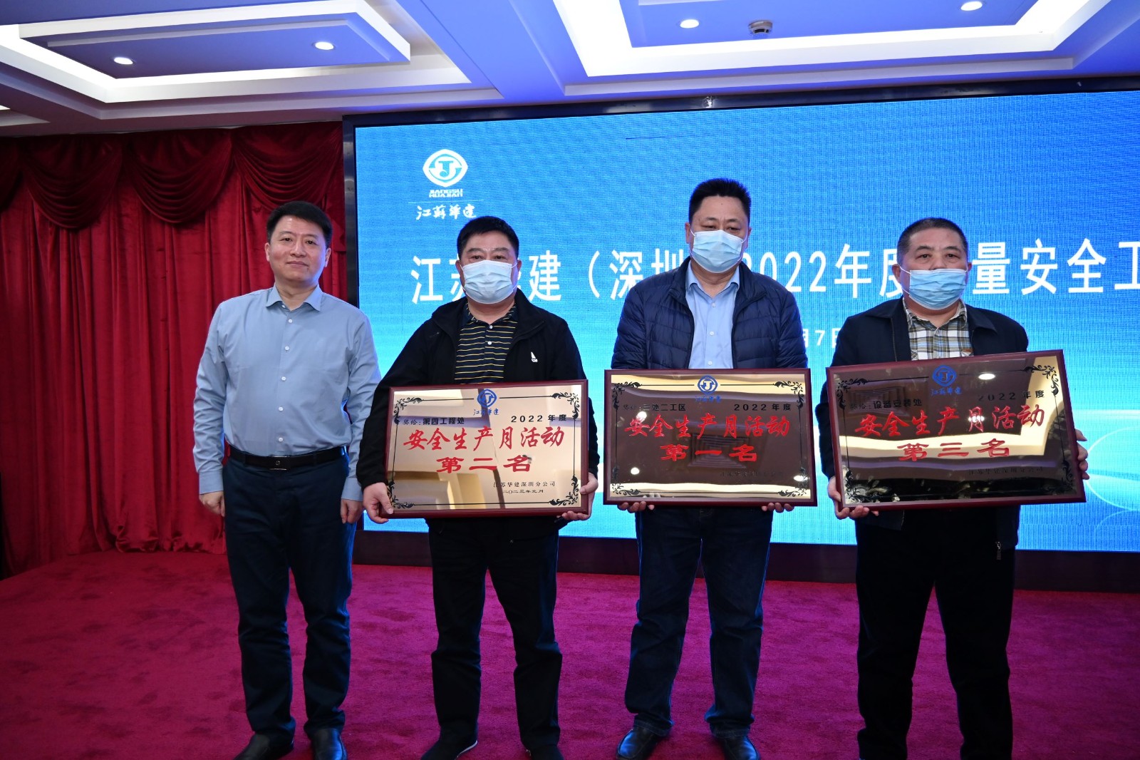 会议表彰了2022年下半年先进项目经理部、安全生产、文明施工检查综合评分前三名和“安全生产月”活动前三名,公司总经理吴碧桥为获奖工程处颁发了荣誉奖牌。