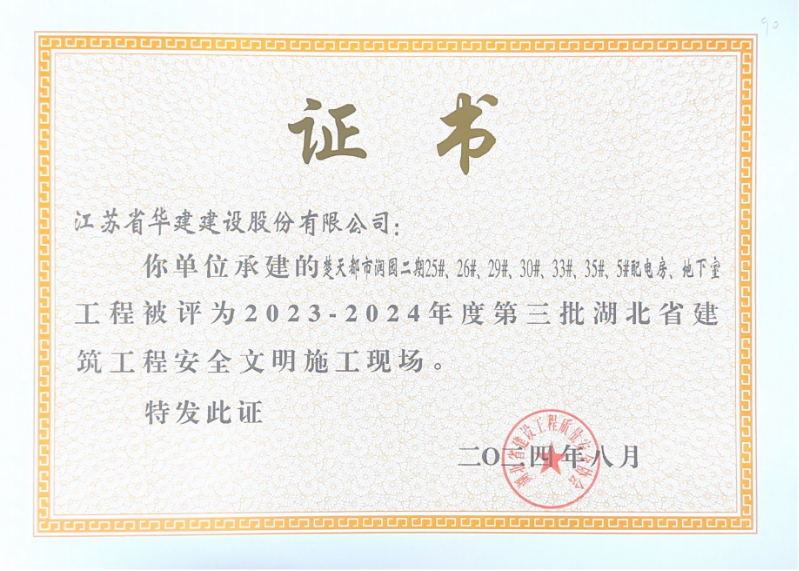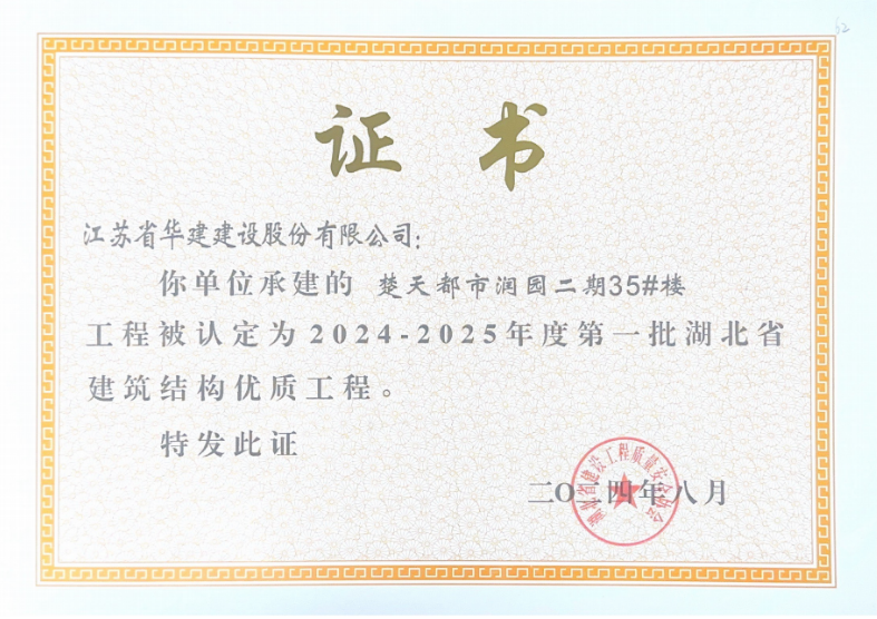 近日,公司承建的楚天都市润园二期项目被湖北省建设工程质量安全协会评为“2023-2024年度第三批湖北省建筑工程安全文明施工现场”和“2024-2025年度第一批湖北省建筑结构优质工程”。
