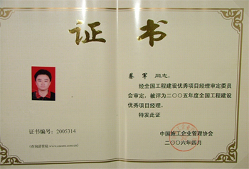 他本人因成绩突出,工作勤勉,先后获得“扬州市青年突击手”、全国工程建设优秀项目经理等荣誉称号。