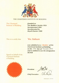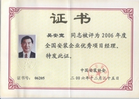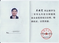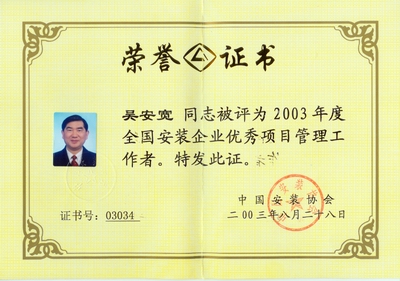 2002年开始他被聘为北京市建设工程评标专家;2003年获“中国安装企业优秀项目管理工作者”称号,2004年获全国工程建设“优秀项目经理”称号;2006年获全国安装企业优秀项目经理; 2007年获扬州市国资委党委颁发的“三强”党支部书记称号;2008年12月获得中共北京市外地在京施工企业委员会颁发的在奥运工程建设中的优秀共产党员;2009年获“江苏省建筑业企业杰出建造师”和中国建筑业协会颁发的“全国建筑业企业优秀项目经理”荣誉称号。2009年他还参加了英国皇家特许建造师(CIOB)国际执业资格认证培训。目前,他已顺利通过考试,获得英国皇家“英国特许建造师”资格。
