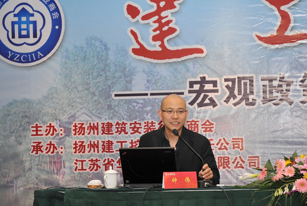 4月29日下午,由扬州市建筑安装行业商会主办,扬州建工控股有限责任公司、江苏省华建建设股份有限公司承办的首期建工大讲堂在扬州西园大酒店开讲。本次大讲堂邀请的是著名经济学家钟伟教授作为主讲嘉宾。钟教授围绕宏观政策扑朔,房地产中期调整为主要内容对2010年经济复苏中的风险和调控进行了分析和解读。针对美国经济和中国经济形势和走向,房地产市场格局、特点等热点,钟教授作了精彩论断,观点精辟独到、信息详实丰富、语言生动风趣,让与会者开阔了视野,增长了见识,最后钟教授还和与会人员进行了互动,答疑解惑,给人留下深刻印象。