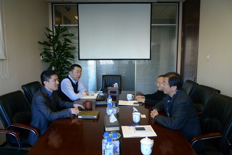 在九鼎投资公司固定收益投资部总经理冯哲的热情陪同下,陆董事长一行首先参观了九鼎投资北京总部。在会客室,宾主双方进行了友好而热烈的会谈。陆董事长首先感谢蔡总在百忙之中的会见,并向蔡总介绍了公司在施工、地产、金融三大板块的基本情况,以及近年来在分配机制上的突破与创新,“分得清楚、合得愉快”的理念得到蔡总的赞同与响应。陆董事长还指出,当前只有转换模式,将产业与资本结合才能走得长远,他提出的 “施工-地产-金融”相结合,以融资方式运作,通过基金投放推动项目的滚动发展;以及在政府项目、PPP项目上与优秀基金公司创新运作模式,打造利益共同体,实现无人受损、人人受益的新型合作模式的构想得到了蔡总的认可。蔡总随后也就九鼎投资的投资领域、发展理念和运营模式做了介绍,他说九鼎去年开始正在积极增强不动产方面的投资,双方在多个领域均有很大的合作空间。会谈中,双方重点就与地方政府开展深度合作的“百城万亿”工程、共同打造区域基金和产业基金以及开展不动产投资运作等可合作的领域做了广泛交流沟通。双方均表达了进一步深入合作的意愿,就形成战略合作协议,并在“百城万亿”计划中广泛合作、在不动产领域共同尝试,以及项目开发、PPP项目介入等方面达成了一致意见。会谈后,宾主双方还互致邀请,相约多多走动,互通资讯,共谋发展。