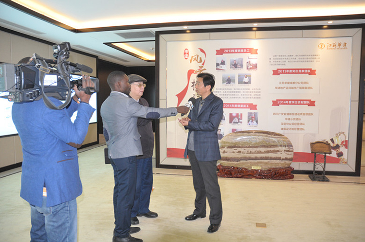 客人在陆董事长陪同下参观了华建展示中心,简单的午餐后在会议室进行了交流与会谈。陆董事长首先介绍了华建的基本情况,特别是打造“三个共同体”以及与员工和合作方分名、分利、分未来的运营机制,最后希望能够借助我国“一带一路”战略与海山国际联合共同参与安哥拉的城市建设。安方用PPT介绍了2013-2017年的远期发展规划和首都罗安达近期的发展设想,希望半岛官网入口网页版这样有实力的中国国有企业积极到安哥拉拓展市场。陆董事长最后还接受了安哥拉国家电视台随行记者的采访,并与科鲁兹·内图秘书长、巴依相·朱纽主席等贵宾亲切合影。