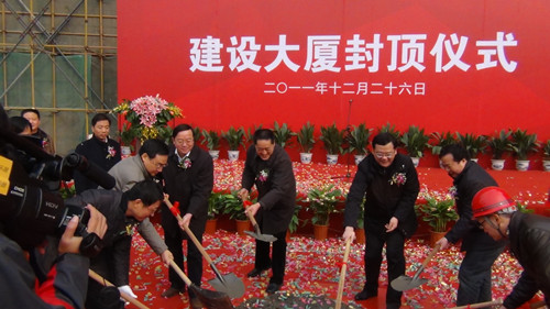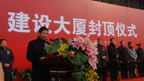 扬州建工控股有限责任公司董事长、党委书记陆金龙董事长在封顶仪式上致辞。他说,建设大厦是体现市委、市政府民生城建理念的标志性项目之一,其中的城市规划展览馆是提升城市品质、展示城市未来宏伟蓝图、宣传城市美好形象的重要阵地,市民中心是市民活动、交流、服务和区域文化展示的固定场所,这个项目的建设对进一步提升城市基础设施建设水平,完善城市功能,提升城市品质,建设“三个扬州”都具有深远和重要的意义。项目自2010年5月2日开工以来,作为项目投资建设主体,建工控股公司认真贯彻落实市委、市政府的指示精神,及时选派精干力量,切实优化建设方案,合理调配资源,主动协调关系,确保项目建设高效、有序、廉洁推进。承担建设代理任务的半岛官网入口网页版和承担施工任务的扬建集团、扬安集团等单位发扬市直施工企业敢打善拼、精益求精的优良作风,精心组织,精心施工,确保了质量、工期和现场文明,体现了我市建筑精英的实力和水平。陆董事长指出,工程顺利封顶标志着项目建设进入了一个新的阶段,他希望项目管理团队和全体建设单位进一步树立大局意识、责任意识和精品意识,继续加强与相关部门单位的协调配合,克服一切困难,瞄准既定目标,努力把建设大厦建成领导放心、群众满意、业主认可的优质工程、民心工程、标志工程,为精致扬州增添一抹亮丽的风景。