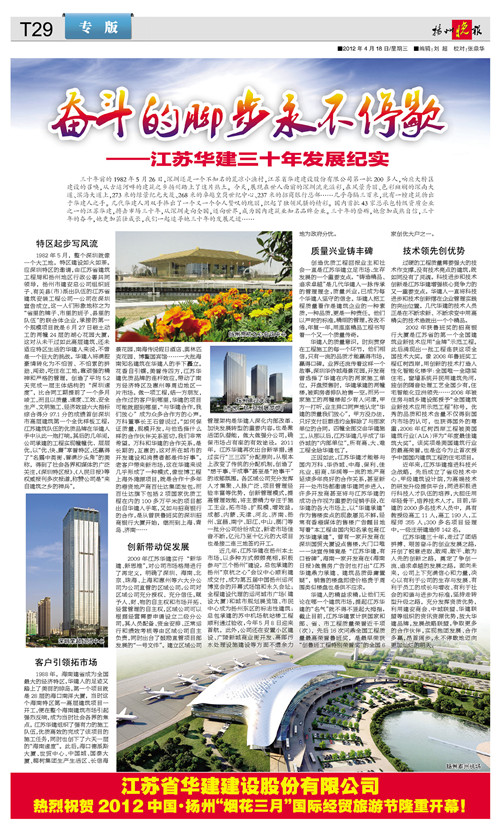《扬州晚报》专版刊发公司三十周年宣传文章 时间:2012-04-19 5561 4月18日,《扬州晚报》T29版刊发专版文章《奋斗的脚步永不停歇——半岛官网入口网页版三十年发展纪实》,从公司起步、市场开拓、创新发展、质量与科技等各个层面,介绍了公司三十年的奋斗历程、综合实力和发展业绩。