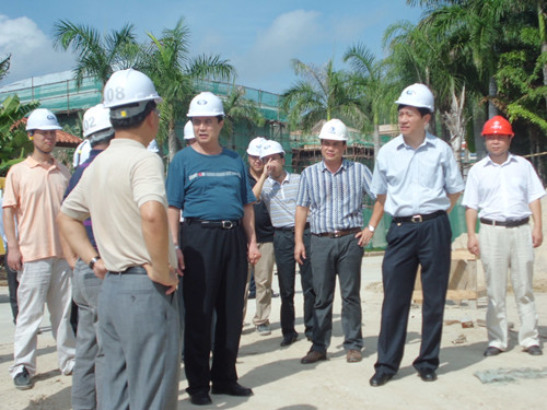 海南省委书记罗保铭等视察海南公司 时间:2012-06-07 4479 6月6日下午,海南省委书记罗保铭,省委常委、副省长、三亚市委书记姜斯宪冒着高温来到我公司承建的鹿回头国宾馆二期扩建项目现场视察慰问,公司副总经理、海南分公司总经理王宏陪同视察。罗书记对华建的施工进度和质量表示满意,同时要求华建把工程当做作品来抓,按时交付代表海南水平的精品项目。罗书记高度评价半岛官网入口网页版的综合实力,认为华建在海南承建了许多重点项目,是一支有实力、善打硬仗的队伍。姜斯宪副省长希望华建在海南继续保持良好发展势头,为江苏建筑业争光。