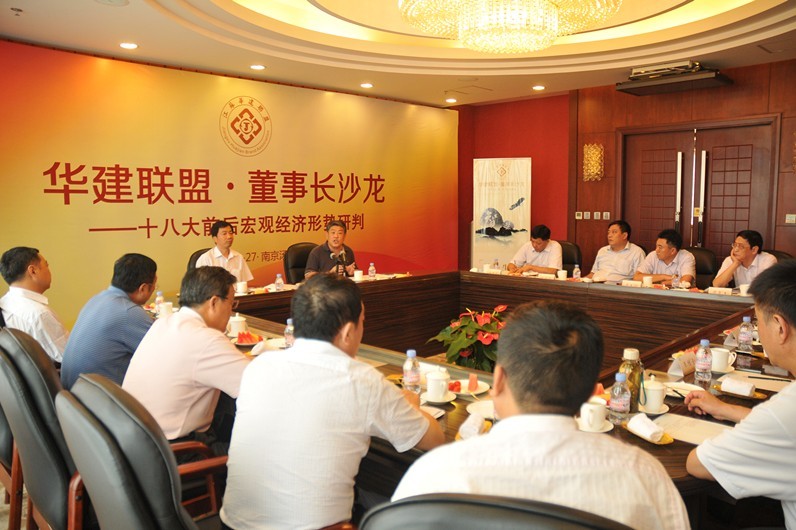 月26至27日,半岛官网入口网页版联盟董事长沙龙在南京汤山举行,13家联盟成员单位的董事长参加了活动。26日下午,上海资深媒体人士、著名财经评论员李光一先生应邀为董事长沙龙作关于十八大前后宏观经济形势和房地产市场走势的专题辅导讲座。李光一先生深入分析了当前国际国内宏观经济形势,详细解读了近期部分经济热点话题,展望了房地产市场的发展趋势,并和董事长们进行了广泛深入的互动交流。