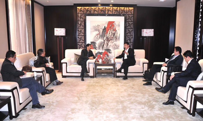 陆金龙董事长与九鼎投资高管洽谈项目合作 时间:2013-11-21 5215 11月20日,陆金龙董事长在公司企业展示中心会见了昆吾九鼎投资管理有限公司合伙人岳锦、副总裁朱成彦等高管一行。 在展示中心会客厅,双方互相介绍了各自公司的发展概况,就西安曲江项目的合作进行了洽谈,同时双方还对企业的管理理念、分配机制以及投融资等方面进行了交流。扬州现代金融投资集团副董事长、总经理刘研、公司高管程杰、陆俊等陪同参加。