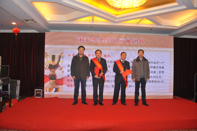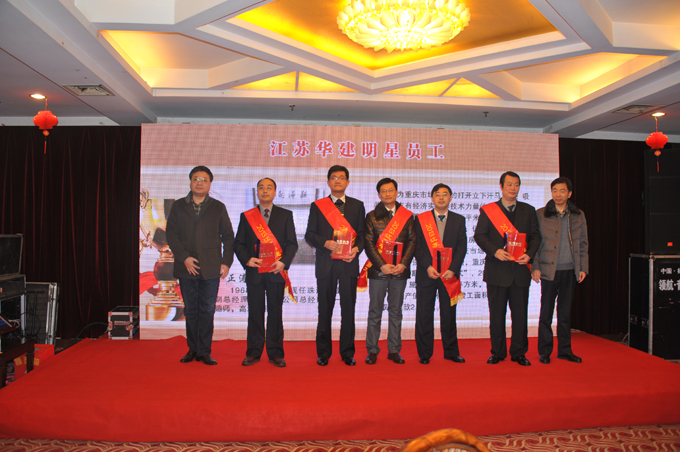 表彰会上,公司对2013年度表现突出的个人和团队进行了表彰, 34位员工获评“优秀员工”称号,朱靖、吕进、严正涛、朱旭生、陈明等5同志被表彰为“明星员工”,华建地产运河城市广场项目团队和半岛官网入口网页版成都分公司团队被表彰为“突出贡献团队”。