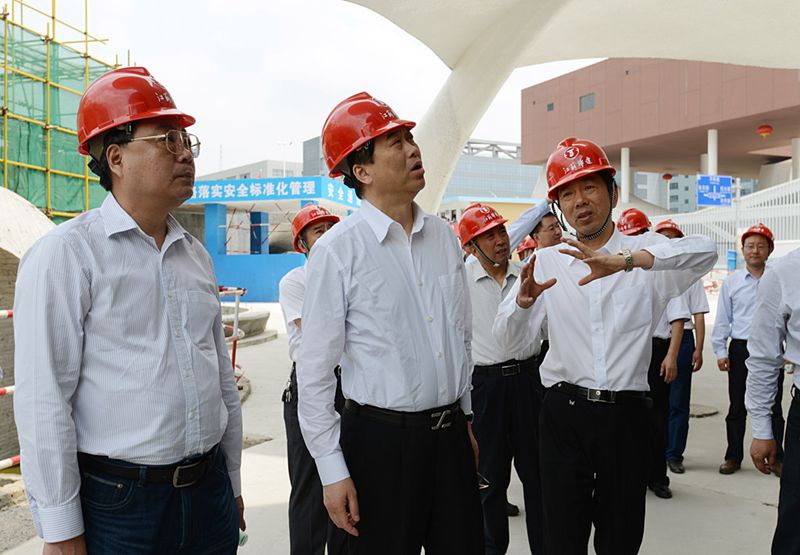 在施工现场,朱市长与项目管理人员一一握手,向大家表示亲切问候。在陪同人员引导下,他饶有兴致地边走边看,认真听取项目负责人对工程特点、工程进展、工程用材等方面的情况汇报,不时点头称赞施工人员的高超水平和施工技艺,当听到该工程确保“鲁班奖”、争创“詹天佑奖”的创优目标时,他连连表示赞许,并与项目部主要管理班子亲切合影。随后,朱市长一行还来到公司新建成的石岩生产基地看望慰问,参观了公司安装处荣誉走廊,勉励公司要抓住当前良好的发展机遇和发展势头,乘势而上,开拓大市场、多建大项目、争创大业绩,为加快“三个扬州”和名城建设作出更大贡献!