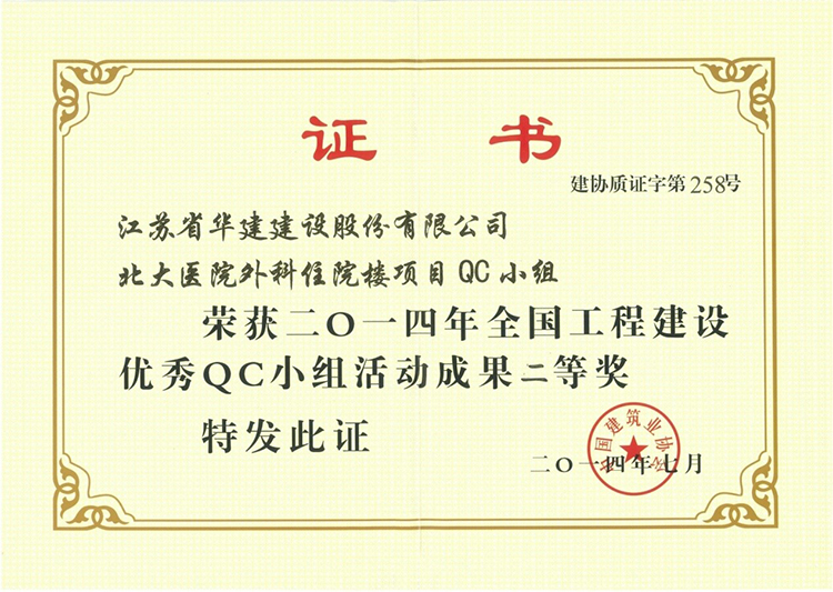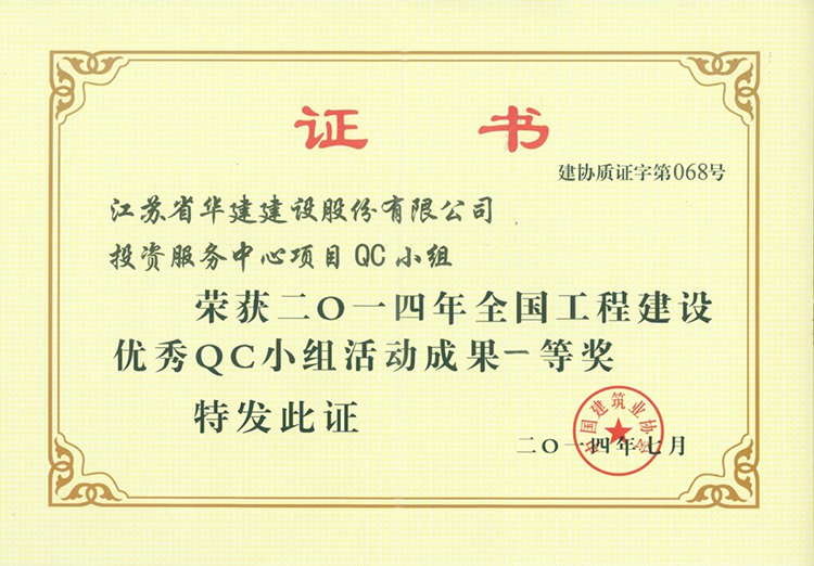 公司两项目荣获2014年中建协优秀QC成果奖 时间:2014-07-23 4146 近日,公司推荐的两项QC成果在中国建筑业协会举办的2014年全国工程建设优秀QC小组活动成果交流会上荣获一、二等奖,分别是北京公司的投资服务中心项目QC小组《提高插接式一体化节能铝板幕墙安装合格率》和深圳公司的北大医院外科住院楼项目QC小组《提高外墙砂胶仿瓷砖涂料施工质量合格率》。今年共有29个地区、17个行业(总公司)协会推荐申报的875个全国工程建设优秀QC小组活动成果参与交流发布。