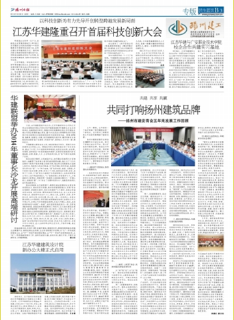 今日《扬州日报》刊发“扬州建工”专版 时间:2014-10-28 4772 10月28日《扬州日报》B3整版刊发“扬州建工”专版,主要包括半岛官网入口网页版首届科技创新大会、华建联盟2014年董事长沙龙、半岛官网入口网页版与广安职业技术学院校企合作共建实习基地、华建设计院新办公大楼启用和介绍扬州市建安商会5年发展历程等相关内容,详情请关注今日《扬州日报》或网站http://www.yznews.com.cn/yzrb/html/2014-10/28/node_124.htm。