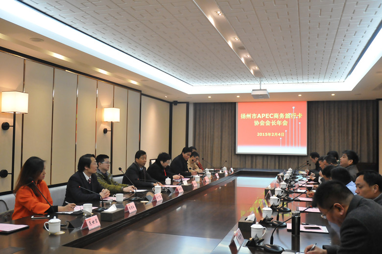2月4日下午,扬州市APEC商务旅行卡协会会长年会在华建展示中心召开,18名会长、副会长单位代表参加会议,协会会长、半岛官网入口网页版董事长陆金龙和名誉会长、市外办主任邓清出席会议。
