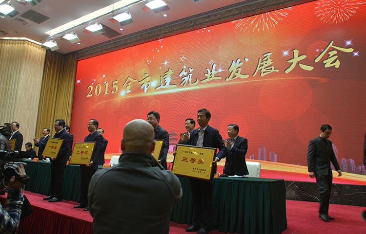 半岛官网入口网页版获评扬州市建筑业先进企业 时间:2015-02-25 3272 2月25日,扬州市委、市政府召开全市建筑业大会,总结2014年全市建筑业工作并部署2015年工作。陆金龙董事长、宗有农总经理出席会议。会上半岛官网入口网页版被表彰为2014年度扬州市建筑业先进企业;建工控股公司获市政府建筑业目标管理奖三等奖;宗有农总经理被授予2013-2014年度扬州市建筑功勋奖章,胡华兵等2人荣获扬州市建筑业先进个人等荣誉称号。