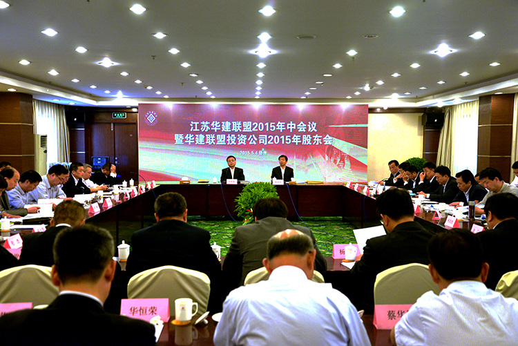 5月4日,在前一天华建联盟投资公司董事会监事会召开会议并通过了有关事项以后,华建联盟在扬州怡园饭店召开2015年中会议暨联盟投资公司股东会,联盟成员单位负责人(联盟投资公司股东单位代表)、投资公司董事和监事、高管等参加会议,华建公司高管、各区域公司及分支机构和总部部门负责人等列席会议,宗有农主持会议。