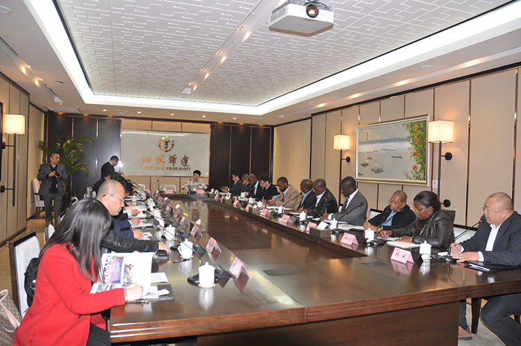 在参观了华建企业展示中心以后,双方在会议室进行了商务交流。陈荣春副董事长首先介绍了华建的基本情况和实力优势,对安哥拉第二次组织来访的代表团表示欢迎。安方表示,1月底以办公厅总秘书长科鲁兹•内图为团长的访问团,对华建留下了深刻的良好印象,特别对陆金龙董事长的经营理念深表赞同。安方非常希望华建近期能积极参与安哥拉国家和地方惠及民生的多功能性体育场馆、足球场、游泳中心等体育设施的建设和修缮。陈荣春副董事长表示华建将认真考虑安方的提议和需求,积极研究参与安方项目建设的可能性。餐后,华建与海山国际控股就安哥拉Cazengo新城的投资与建设项目进行了初步商谈。