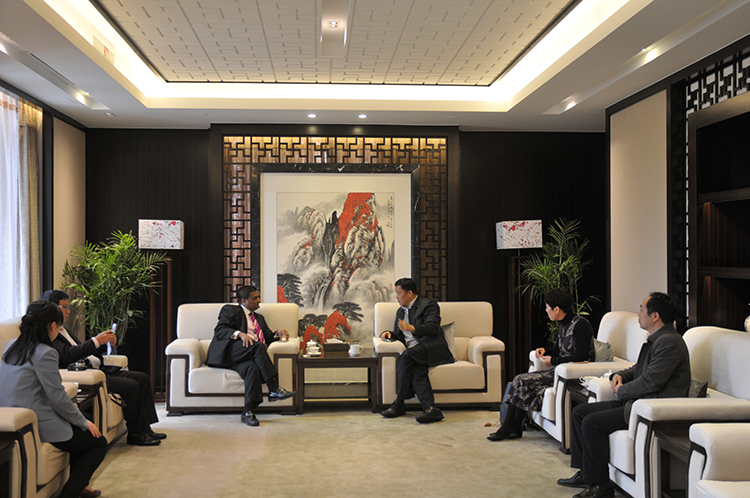 4月7日下午,来扬出席“中国扬州——印度创新与产业投资论坛”的印度驻沪总领事Prakash Gupta(古光明)专程到半岛官网入口网页版访问,市海促会常务副会长、扬州建工控股公司副总经理兼半岛官网入口网页版监事会主席吴士茂会见了古光明领事。古光明领事在参观了华建展示中心后,介绍了印度政府针对外商投资的新政以及潜在的投资项目,如道路公路交通、港口运输、电力、民航、铁路在内的基础设施建设产业,以及未来5年内印度拟建设100个智慧城市等相关信息,希望华建这样的优秀企业能尽早到印度寻找发展机会。吴士茂主席感谢古光明领事对华建的信任,表示华建将紧跟国家“一带一路”发展战略,认真研究印方提供的项目信息,争取积极参加印度的发展建设,共同推进合作共赢。