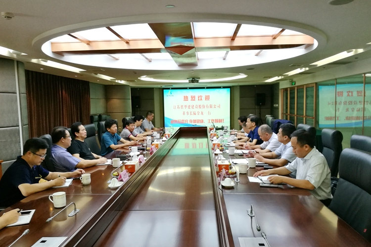 在苏中集团会议室,笪鸿鹄董事长对陆董事长一行来访表示热烈欢迎,他首先分析了当前的宏观经济形势以及房地产发展趋势,并从施工主业、风险防范、股权激励、建筑产业化以及转型发展等方面介绍了苏中建设近年来发展中的一些做法和经验,他表示,企业在发展壮大过程中,兼并融合是发展的必由之路,今后十年,建筑业发展前景仍然看好,只要有效控制风险,完善产业链条,规范内部管控,建筑企业仍有很大发展空间。陆董事长表示,苏中建设是省内领先品牌,对主业专注,对行业敬畏,尤其在收购专业公司,企业互保方面的经验值得借鉴,此行取真经,听真话,获益匪浅,取得良好效果。他认为包工头式的闯市场行为一定会在江湖中消失,任何行业都不会是单打独斗,未来一定是合伙人制,是品牌公司之间的强强联合。苏中和华建都是省内排名前三的优质品牌企业,理念相通,思维同频,在一带一路、PPP项目建设热潮中,双方应交流沟通,加强互动,集双方资源、资本优势,通过股权投资、联合体投标等形式在企业兼并、重大项目建设等方面形成合作,实现共赢。座谈会上,双方还就建筑产业化、投融资、BIM技术等方面内容进行了交流。双方约定,双方将定期互访交流,互通有无,争取在大项目建设上形成战略合作。