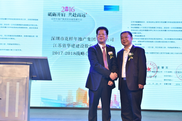 答谢大会上,王宏董事长代表半岛官网入口网页版与花样年地产集团总裁刘宗保签署了双方战略合作框架协议,同时,半岛官网入口网页版以与花样年地产集团合作时间最早、合作期限最久赢得了本次大会新设的唯一“钻石级供应商”最高大奖,蒋超代表公司上台捧回奖杯证书。