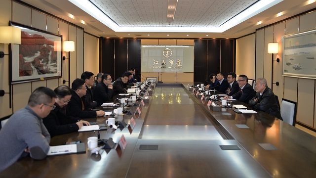2月22日,中欧国际工商学院校友总会首席执行官谭伟光一行来我司考察交流。公司领导陈荣春、王吉骞、李长栋、杨杰和上海分公司相关人员出席接待。