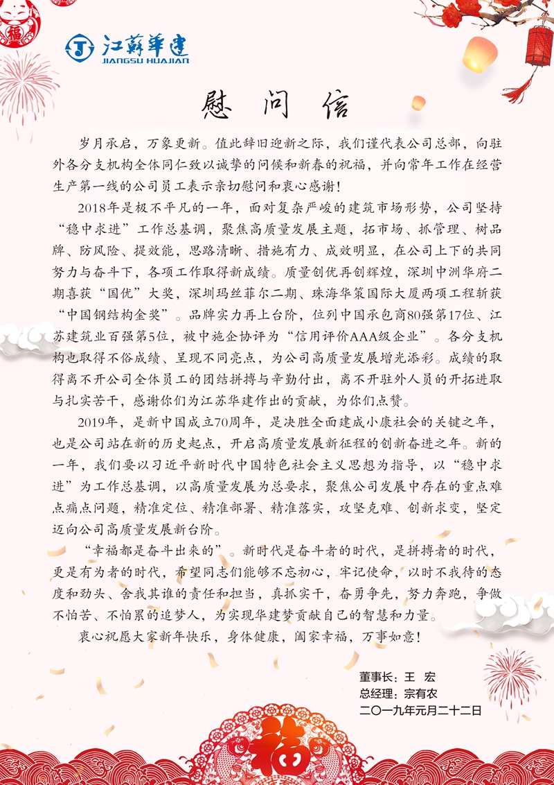 王宏董事长宗有农总经理给公司驻外员工的慰问信