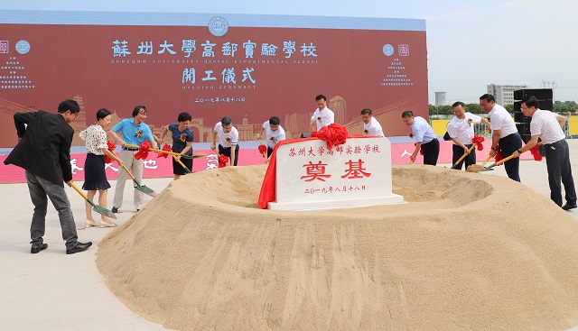 苏州大学、高邮市、扬州市委宣传部及公司相关领导为苏州大学高邮实验学校项目培土、奠基。