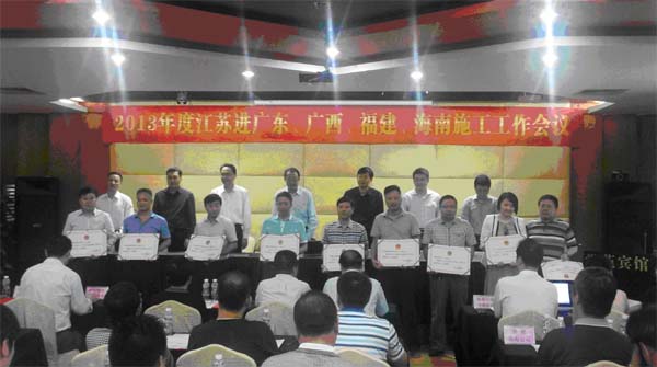 海南分公司荣获2013年江苏进粤、桂、闽、琼施工先进企业 时间:2014-04-28 3614 4月25日,2013年度江苏进广东、广西、福建、海南施工工作会议在珠海市市委党校学苑宾馆召开。会上,海南分公司荣获“2013年江苏进粤、桂、闽、琼施工先进企业”,高家驯被表彰为“2013年江苏进粤、桂、闽、琼施工优秀企业经理”,1人被评为优秀建造师、2人分别被评为质量安全和经营财务管理先进个人。 另讯:4月19日,从中国施工企业管理协会第29次年会传来喜讯,海南公司匡新益被评为2013年度“全国工程建设优秀项目经理”。
