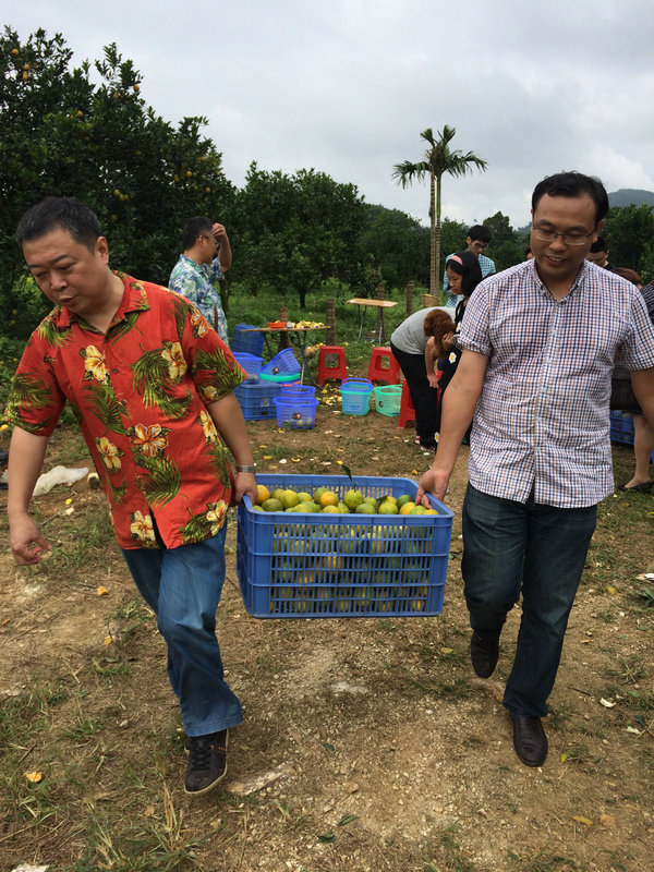 采摘,丰收的果实! 时间:2014-12-01 3838 南国椰风送秋意,海岛琼中结硕果。11月30日清晨,海南分公司组织绿橙采摘体验活动,机关二十多名员工参加。一路细雨一路歌、一路颠簸一路笑,在琼中鑫苹果园里,一排排、一垄垄,漫山的果树上结满了绿橙,大家热情高涨,兴致盎然,亲手体验采摘的乐趣、劳动的快乐、收获的喜悦和甘美。