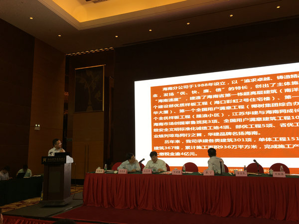 3月24日上午,江苏省人民政府驻深圳(广州)办事处和江苏省住房和城乡建设厅在海口召开2017江苏建筑业南方区工作会议,驻南方四省(区)100多家江苏建筑业企业参加了会议。江苏和海南两省主管领导到会并作了重要讲话,公司副总、海南分公司总经理陆俊出席会议并作为获奖企业代表交流发言。