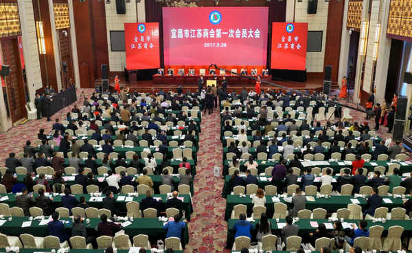 328日,宜昌市江苏商会成立大会在桃花岭饭店举行,200余名江苏籍企业代表齐聚一堂,共话发展。