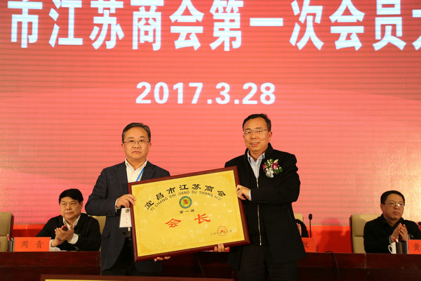 宜昌市委常委、统战部长、市总工会主席王均成,市人大常委会副主任周青,市政府副市长黄黎明,市政协副主席、市工商联主席张发卫以及江苏省工商联、扬州市工商联、公司监事会主席吴士茂等领导出席成立大会,并为宜昌市江苏商会揭牌。