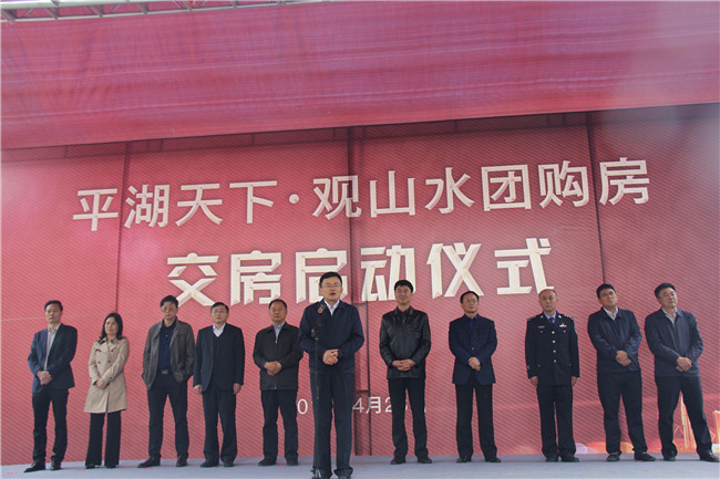 4月28日上午10时,由海南区域公司宜昌分公司总包承建的平湖天下·观山水团购房交房启动仪式在项目C区隆重举行,夷陵区委书记王玺伟等区委区政府相关领导,宜昌分公司总经理唐生健出席仪式并参与团购房交钥匙环节。