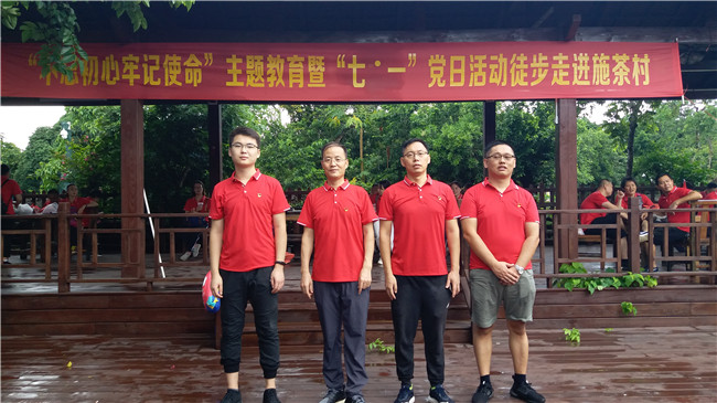 7月1日上午,为纪念建党98周年,增强党员干部政治意识,激励党员干部以改革创新的精神,推进基层党建工作,在自贸区(港)建设热潮中勇当先锋,做好表率,海南省建设工程质量安全监督管理局、海口市建设工程质量安全监督站、海南省建设工程质量安全检测协会联合开展以“不忘初心,牢记使命”为主题的党建活动,以徒步方式走进中国幸福村、新农村建设示范村一一海口市石山镇施茶村。