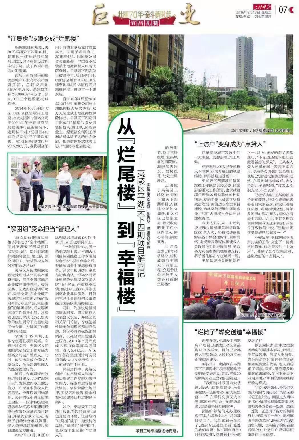 《三峡晚报》8月13日第7版整版报道了半岛官网入口网页版宜昌分公司总承包建设的平湖天下四期项目。