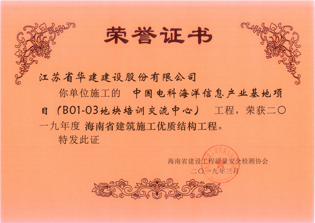 另,从2019年海南省第十五届质量管理(QC)小组活动成果发表交流会上获悉,今年公司6项QC小组活动成果参加交流,洋浦中学图书馆和体育馆项目QC小组等5个小组荣获海南省优秀质量管理(QC)小组二等奖,海花岛三(一)期2-10-1地块QC小组获得三等奖。