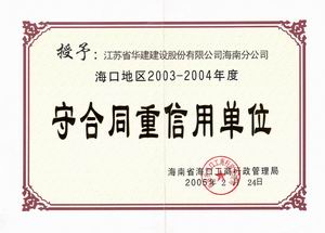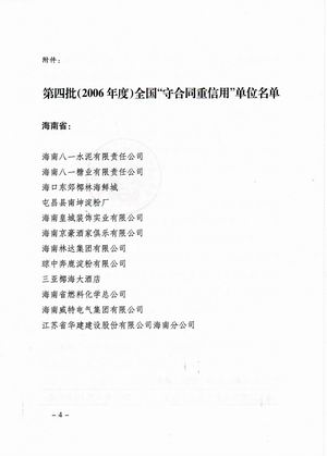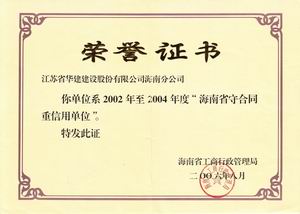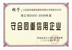企业诚信荣誉 时间:2019-01-01 8516 2001-2002年度海口市守合同重信用 2003-2004年度海口市守合同重信用 2005-2006年度海口市守合同重信用 2002-2004年度海南省守合同重信用 2006年度全国守合同重信用1 2006年度全国守合同重信用2 2006年度全国守合同重信用3 2006年度全国守合同重信用4 2012年度海南省守合同重信用