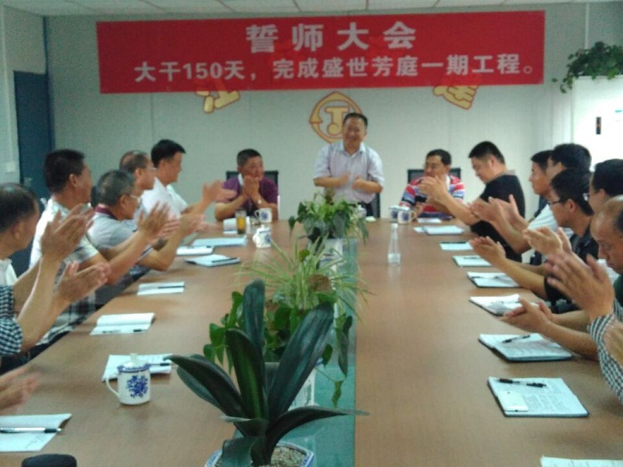 8月31日下午,盛世芳庭项目部在工地会议室举行“大干150天誓师大会”,半岛官网入口网页版常务副总经理、总工程师程杰、珠海区域公司总经理缪国枢、副总经理严正涛、江苏扬安集团董事长李幼杰及项目部管理人员参加会议。