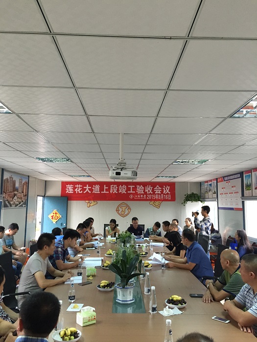 9月16日下午,广安项目莲花大道上段竣工验收会在项目现场会议室举行。广安区委常委李荣盛、广安区住建局副局长周春兰,财政局、质监站相关领导和广安项目指挥部各职能部门相关同志等出席验收会。