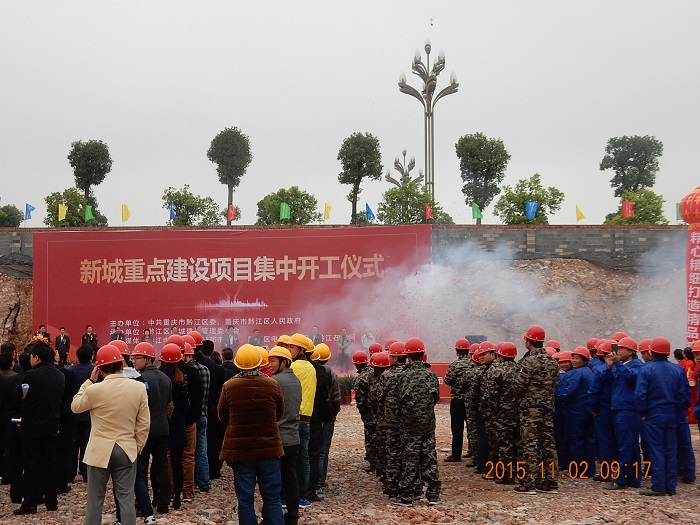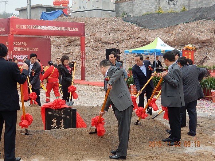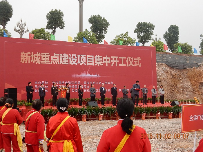 11月2日上午9:00,重庆黔江新城重点建设项目集中开工仪式在我公司承建的黔江区学府花苑项目现场隆重举行。黔江区委书记余长明、区长徐江、人大主任梁正华、政协主席秦代书率四套班子成员和项目业主、施工方、监理方代表等共同出席仪式并为项目培土奠基。