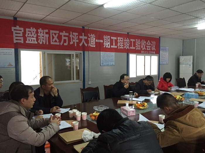 12月11日上午,广安项目方坪大道一期竣工验收会在项目现场会议室举行。广安区人大主任蒋成文、区委常委李荣盛、广安区住建局副局长周春兰,财政局、质监站相关领导和广安项目指挥部各职能部门相关同志等出席验收会。