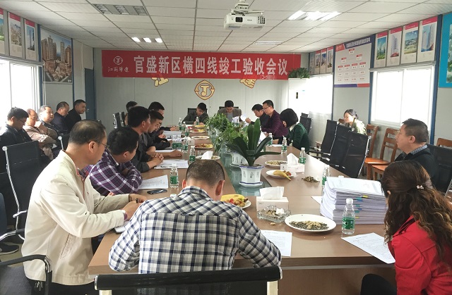 广安项目横四线通过竣工验收 时间:2016-04-09 2862 4月8日下午,广安项目横四线竣工验收会议在项目现场会议室召开,广安区住建局副局长周春兰主持会议。经项目监理、设计、区质监、交通等多个单位及业主现场代表实测检查、总结汇报后,一致同意工程验收合格。横四线作为一个单位工程,是官盛新区“三纵四横”七条次干道之一,道路全长1.01km,路幅宽度25m,双向四车道,全线均为路基形式。