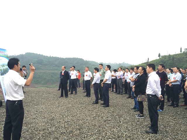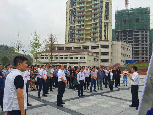 广安区党代会代表团参观广安项目 时间:2016-09-27 3524 9月26日,中共广安区第五次代表大会召开之际,广安区委书记文建平、副书记吴荣胜率与会代表共计超过400人参观官盛新区。代表团一行沿新区已建成主次干道行进,并在官盛湖大坝和官盛春天美好家园建设现场下车驻停,广安区委常委李常兵从项目规划缘由、项目建设进展及社会影响和效益等方面对两个项目做了详细解说。